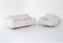 Enhance your living room with the Newport White Fabric 2 Piece 84" Sofa & Oversized Arm Chair Set. Designed in a modern style, this set combines comfort and sophistication with firm seating and track arms. The chic optical white fabric perfectly complements the natural oak wood legs, making it a versatile addition to any decor.