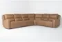 Experience the ultimate in comfort and style with the Liam Saddle Brown Leather 140" 6 Piece Flexsteel Power Zero Gravity Reclining Modular Sectional. This modern sectional features adjustable headrests and a reversible orientation, making it a versatile addition to any living room. The 100% top grain leather upholstery ensures durability and a luxurious feel.