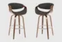 Introducing the Vini Curve Charcoal Fabric + Walnut Swivel 30" Barstool Set Of 2, perfect for adding a touch of Mid-Century Modern style to your dining room or kitchen. These barstools feature a curved design and swivel functionality, making them both stylish and practical. The charcoal fabric upholstery complements the natural walnut bentwood frame, creating a sophisticated look.