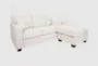 The Russell Ivory White Fabric 74" Sofa with Reversible Chaise and Loose Reversible Back offers a stylish and functional addition to any living room. Crafted in a traditional style, this sofa features a firm comfort level and a versatile L-shaped design that fits well in various spaces. The ivory color and 100% polyester high performance fabric ensure durability and a soft, inviting touch.