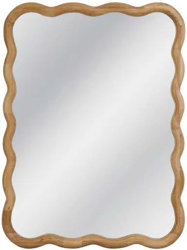 The Rider Wall Mirror features a wavy, rectangular frame crafted from brown wood, exuding a coastal boho style that is both relaxed and chic. The gentle curves of the frame mimic the ebb and flow of the sea, lending an organic and fluid aesthetic.