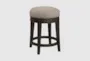 Introducing the Spruce Smoked Grey Wood Fabric 25" Backless Swivel Stool with Nailhead detailing. This versatile stool is perfect for your dining room or kitchen, providing a comfortable and stylish seating option. Its smokey grey finish and poplar solids construction ensure durability and a timeless appeal.