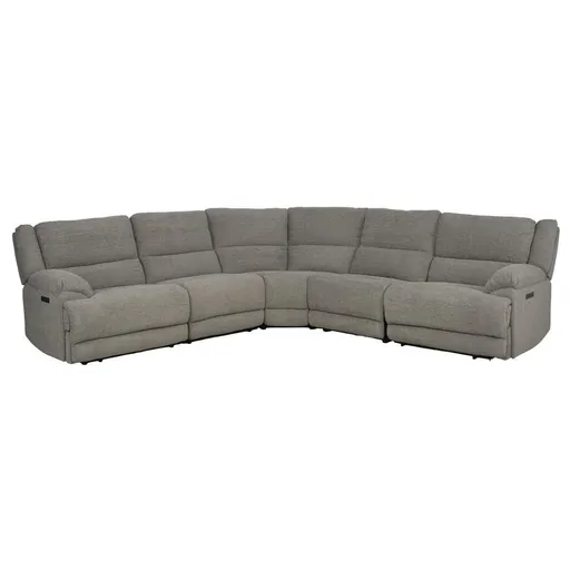 With a lovely gray color and attractive modern appeal, the Sahara Power Reclining Loveseat is as comfortable as it is stylish. Made with microsuede fabric, this modular sofa features power in the headrests, as well as in the right, left and armless recliners. Plus, it has a soft-closing storage console, and built-in USB-A and C ports.