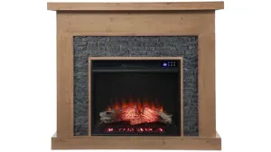 The Barbe Fireplace has a natural wood finish crafts a sleek, modern look, while the gray faux stone adds an organic feel to your living room or den. Remote-controlled features and flickering LED flames give your entertaining space a cozy feel, working with or without the heater for enjoyment in any season.
