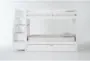 The Luca White Twin Over Twin Wood Bunk Bed with Stairway & Twin Trundle combines contemporary design with practical storage solutions. This versatile bunk bed is perfect for kids' rooms, providing ample sleeping space and extra storage with its integrated drawers and trundle. Made from solid pine and MDF, this sturdy bunk bed ensures durability while maintaining a sleek, modern look.