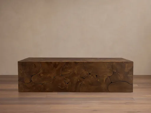 Masterfully handcrafted by our artisan partners in Indonesia, our Kalmar Collection is thoughtfully pieced together from slices of teak heartwood and sapwood affixed to solid wood frames. Each hand-cut section of teak is carefully sanded, smoothed, waxed, and sealed by hand to enhance its natural variations in wood tones, grain patterns, texture, and shape—making it truly one of a kind.