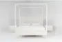 The Austen White Queen Side & Footboard Storage Wood & Upholstered Platform Canopy 3 Piece Bedroom Set with 2 3-Drawer Nightstands offers a blend of functionality and timeless design. This traditional set includes a queen-sized canopy bed with storage options and two matching nightstands with ample drawer space. Constructed from oak veneer and solid rubberwood, this set ensures durability and a classic appeal for your bedroom.