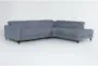 The Blake Denim Blue 113" 2 Piece Power Reclining Sectional with Right Arm Facing Chaise offers a modern and comfortable addition to your living space. Upholstered in 100% polyester fabric, this sectional features an adjustable headrest and USB functionality. Enjoy the right-facing orientation and the convenience of a power recliner.
