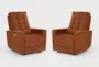 The Ansel Terra Cotta Orange Fabric 33" Power Recliner with USB set of 2 brings comfort and functionality to your living room. Upholstered in vibrant fabric, these recliners offer a power reclining feature combined with USB ports for convenience. The sturdy construction includes hardwood, foam, fabric, and steel.