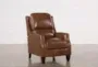 Introducing the Douglas Caramel Brown Leather Manual Push Back Recliner. This high leg recliner combines style and functionality, making it a perfect addition to your living room. With its firm comfort level, you can relax and unwind in this luxurious armchair.