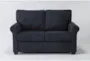Enhance the comfort and style of your living room with the Athos Midnight Navy Blue Fabric Loveseat. This casual loveseat is designed with a high back and foam cushions, providing exceptional support and relaxation. The rolled arms and tapered legs add a touch of sophistication to its timeless design.