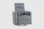 Experience ultimate comfort and relaxation with the Ellery Grey Swivel Glider Reclining Chair. Designed in a casual style, this chair is upholstered in soft, durable 100% polyester fabric. The chair features an attached back and seat cushion, providing consistent support and comfort.