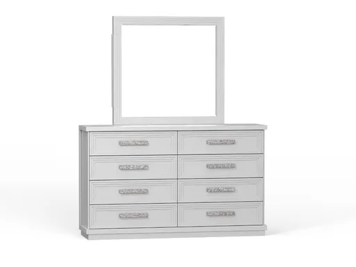 The Snowfall Dresser and Mirror set brings elegant charm and thoughtful storage to your bedroom with its antique white finish and refined design details. The spacious 8-drawer dresser offers a balanced blend of beauty and functionality, making it an ideal anchor piece for your room.