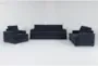Bonaterra Midnight Navy Blue Fabric 3 Piece Sofa Loveseat & Oversized Armchair Set | Loose Reversible Back