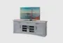 Bring a soft and neutral touch to your living room with the Nantucket Grey Modern Glass 76" TV Stand with Doors. This casual entertainment center offers ample storage space and versatile shelving options with a dove grey finish. The blend of poplar solids and birch veneers with an oak veneer top ensures durability and style.