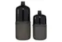 Enhance your rustic decor with this set of 2 solid black stoneware bottle vases. Featuring a reactive glaze finish, these round vases add a touch of sophistication to any room. Perfect for displaying on a mantel or as a centerpiece, they bring a unique charm to your space.
