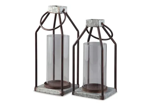 Whoever said you couldn’t illuminate in style? This set of Diedrick lanterns act as beautiful vessels for the romantic glow of pillar candles, whether placed in an indoor or outdoor space. The galvanized metal offers decor versatility, and the top metal handle and glass hurricane shade make it oh-so-easy to transport.
