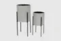 These remarkable planters are ideal for both light-toned and dark-toned living spaces. This item ships in 1 carton. Please note that this item is for decorative use only. Suitable for indoor and outdoor use. This item ships fully assembled in one piece. Maximum weight limit is 5 lbs. Planters do not have drainage holes but they are not watertight. This light gray colored plant pot comes as a set of 2. Modern style.