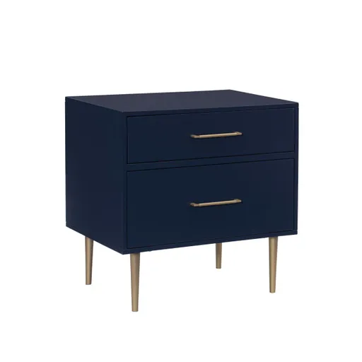 This nightstand is glamorous to the eye and is able to store a lot more stuff that you would expect. Clean lines with slender accents of gold will finish off your bedroom or provide sophistication as a side table. Easily store books, remotes, blankets, etc. in the gliding drawers.