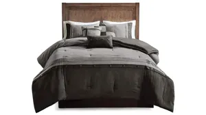 For a warm, lodge look in your space, the Boone Collection is perfect for you. The unique fabric used in this set has a textured earthy print pieced with polyester microsuede at the bottom and buttons for a personal touch. Three decorative pillows using piecing and embroidery of both top of bed fabrics completing this cohesive look.
