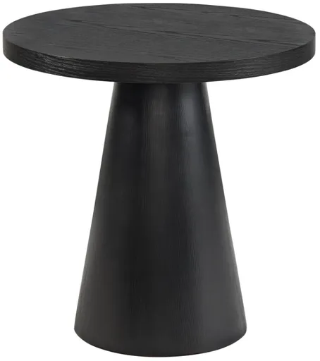 The Portland Round End Table in Black is a stylish addition to any living space. With its Scandinavian inspired design, smooth edges, and wire brush finish, this coffee table is both functional and trendy. The pedestal base adds refined, visual appeal.