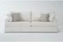 Belinha II Opal White Fabric 95" Queen Memory Foam Sleeper Sofa Bed | Track Arms | Loose Reversible Back