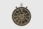 This stylish and fashionable 24" Round Brown Traditional Pocket Watch Wall Clock is a perfect addition to any home decor. Made with quality materials, it features a durable plastic frame in a distressed brown and gold finish, a clear glass surface, and an easy-to-read roman numeric display. This antique style analog clock also boasts a quiet, non-ticking quartz movement for accurate timekeeping, with functioning metal gears as a striking element.