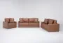 Comfort and style coexist beautifully in our Alicia vegan faux leather living room set. While clean lines establish a timeless modern look, plush design provides irresistible lounging. At 40" deep, the seats are luxurious and include extra thick high-density foam for an especially supportive experience. The cushions are also loose and reversible, ensuring enhanced longevity. With durable, easy-to-clean saddle brown vegan faux leather, you can enjoy handsome, practical upholstery.