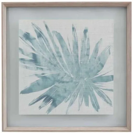 The Bassett Mirror Burlap Ocean Palm Il Framed Print features a serene palm design set against a textured burlap background. Its calming colors and natural style evoke a coastal vibe, making it a perfect addition to any beach-inspired or relaxed decor.