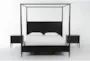 3. Austen Black King Side & Footboard Storage Wood Platform Canopy 3 Piece Bedroom Set With 2 3-Drawer Nightstands | Side Storage | Storage