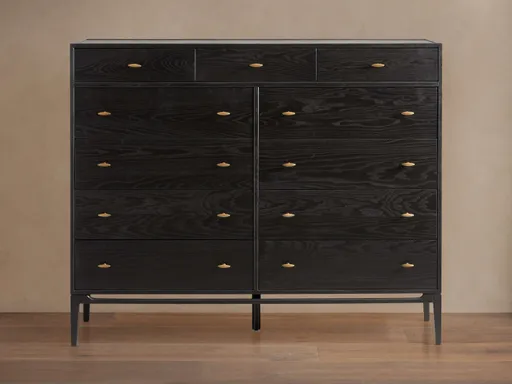 A modern classic, our Brock Bedroom Collection’s understated aesthetic features sleek silhouettes defined by clean lines and deep, hand-stained finishes. Subtle burnished brass hardware elevates Brock’s midcentury style by complementing its natural ash wood with sophisticated detailing.