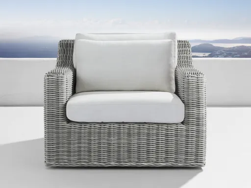 With soft lines and sleek, sloping arms, our Montauk Collection features a classically coastal look. Transitional low-profile silhouettes are meticulously handwoven from premium, all-weather resin wicker around rustproof aluminum. Deep and incredibly comfortable cushions are padded with supportive, dense, antimicrobial foam covered in weather resistant InsideOut Performance Fabric®.