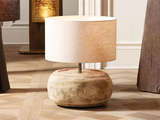 Crafted from subtly charred and wired-brushed Guanacaste wood, our artfully-shaped Ruedo Lamp evokes simplicity, functionality, and a charming rustic design.