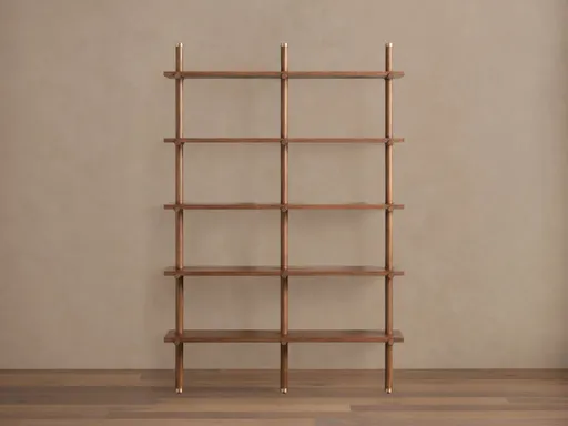 Featuring rustic style with contemporary flair, displaying your favorite décor pieces never looked better thanks to our Woodrow Bookcase. Designed to mount to a wall, Woodrow’s statement-making silhouette features solid beech wood posts, brass accents, and shelves crafted from walnut veneers creating a unique, stacked design.