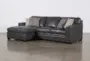 Greer Dark Grey Black Leather 2 Piece 105" Modular Sectional With Left Arm Facing Chaise & Right Arm Facing Loveseat | Deep Seated