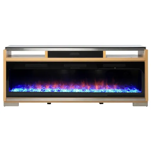 Bring warmth and the coziest of vibes to your home with the Teire Natural Electric Fireplace. Made of oak veneers with brushed metal legs and glass, this impressive remote-controlled fireplace features a realistic flame effect and multicolor LED lighting. But it isn't just about looks — this ultra-modern piece can warm a room up to 400 square feet.