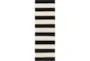 This 2'5"x8' outdoor rug in black and white cabana stripe design is the perfect addition to your modern-style hallway or outdoor space. Its low pile fiber material ensures durability and easy maintenance. This patio piece will elevate your outdoor space.