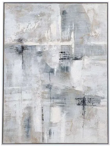 The Gray Day canvas art captures the ephemeral beauty of a misty, overcast sky with its palette of cool grays and subtle whites. The abstract composition evokes the tranquil mood of a quiet, introspective day. Framed in white, this piece brings a modern, airy feel to any space.