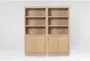 Introducing the Voyage Natural 74" 2 Door Storage Bookcase Set of 2 by Nate Berkus + Jeremiah Brent. This modern bookcase set is designed with a cathedral oak finish, featuring vertical ladderback shelves and solid hardwood construction. Perfect for your dining room or office, it offers ample storage with adjustable shelves and doors for a clean, organized look.