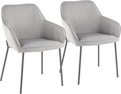Fall in love with the contemporary style and comfort of this gray dining room chair from RC Willey. The bucket style seat is upholstered in beautiful woven fabric and features stylish metal legs. This sleek chair is the perfect addition to any dining or living area. Includes two dining chairs. Available for Online Purchase Only. Assembly required. This product ships direct from the manufacturer, so RC Willey Delivery is not available.