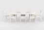 The Austen White Wood 72-90" Extendable Dining Set for 8 is the perfect addition to any dining room or kitchen. Designed with a traditional style, this set includes a rectangular table and eight upholstered armless chairs. The white veneer finish and rubberwood construction ensure durability and timeless appeal.