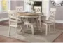 The Rori Beige White Wood 47" Round Dining Set for 4 is a perfect addition to your dining room or kitchen. This modern dining set features a round table and four armless chairs, providing a comfortable and stylish seating arrangement. The set also includes convenient shelves and storage, making it both functional and attractive.