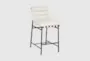 The Barten Cream Vegan Leather Upholstered 37" Counterstool with Black Leg Frame is a stylish and modern addition to any home. Its soft cream vegan leather and sleek black metal frame create a sophisticated look that complements a variety of decor styles. The walnut wood veneer adds a touch of mid-century modern charm, making this counterstool both functional and visually appealing.