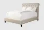 Carleigh Beige King Upholstered Fabric Panel Bed | Tufted | Adjustable Base Compatible | Nailhead