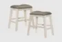 Fideo White Fabric Wood 24.5" Counter Height Stool With Faux Leather Seat Set Of 2 | Backless | Nailhead | Furnzy.com - Shop local furniture stores in one place