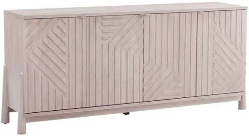 The Horizons Server is a seamless blend of modern design and coastal aesthetics with its cerused white oak finish and brushed nickel edge pulls. Featuring four doors with a geometric-inspired design and soft-close hinges, this server offers ample storage space for your dining essentials.