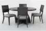 Astra Black 54" Round Dining With Wood + Grey Upholstered Fabric Chair Set For 4 | Asian Hardwood