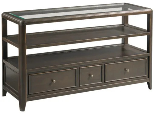 The Whitaker Brown Sofa Table blends elegance and practicality with its glass top, built-in shelf, and storage drawer. Its rich brown finish adds warmth to any space, while the sleek design makes it a stylish addition behind a sofa or in an entryway. Perfect for displaying décor and storing essentials.