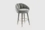 The Myra Light Grey Fabric Swivel Barstool with Back offers a modern touch to your dining room or kitchen. This armless barstool features a comfortable curved back and a smooth swivel function, making it perfect for any food prep or serving space. The light grey velvet fabric combined with pine wood legs adds a soft yet stylish look to your décor.