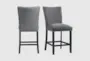 Enhance your dining experience with the Strats Upholstered Charcoal Counter Height Stool Set Of 2. These stools combine casual and farmhouse styles, making them a versatile addition to any kitchen or dining area. The charcoal fabric upholstery and solid wood construction ensure both comfort and durability.